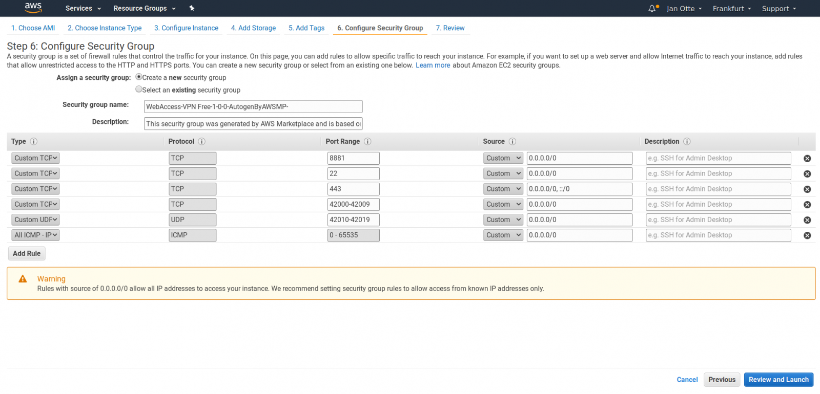 Afterwards you click on "Review and Launch" followed by "Launch".
